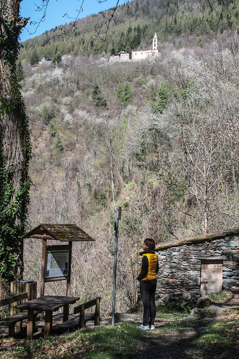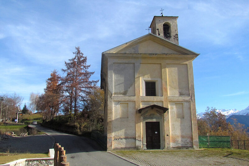 Dal mulino un sentierino pianeggiante porta in breve alle case di Cà Zoia e alla strada che da Montagna sale alla chiesa di Santa Maria il cui edificio è ben visibile poche centinaia di metri più avanti. Sebbene la chiesa sia ricordata solo a partire dalla fine del '500 è probabile che sia sorta su un edificio preesistente e su un luogo di culto praticato già in epoche preromane. Qui venne, infatti, rinvenuta una interessantissima lapide recante un iscrizione nord-estrusca oggi conservata a Sondrio nel Museo Valtellinese di Storia ed Arte. NOTA: quasi di fronte alla chiesa sorge l'Agriturismo Santa Maria, ottimo punto di sosta e ristoro