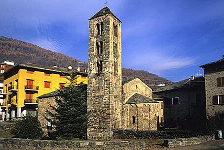 Parcheggiata l'auto dirigiamoci dapprima alla vicina chiesetta di S. Pietro, piccolo e armonioso edificio romanico risalente al XI sec. La facciata della chiesa è rivolta a Nord e l'abside semicircolare ricorda, specie nelle decorazioni, il tempietto di S. Fedelino sul Lago di Mezzola. Il bel campanile, dalle linee leggere ed equilibrate, presenta tre piani di bifore. L'interno della chiesa è a pianta trapezoidale con copertura a capriate. Poco rimane degli affreschi che, verosimilmente, dovevano decorare tutte le pareti interne. Tuttavia, nel 1988, lavori di restauro hanno messo in luce alcuni affreschi tardo gotici nella parte absidale.