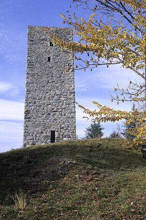 Poco oltre S. Lorenzo la strada inizia a passare ai piedi della rupe boscosa sulla quale sorge la "Torre de li beli miri", simbolo di Teglio. Possiamo lasciare l'asfalto ed imboccare un "sentiero vita" che sale attenendosi più o meno al crinale per poi immettersi nella stradina sterrata che proviene da sinistra. Risalendola si giunge, presto, ai piedi della massiccia costruzione da dove si può ammirare uno splendido panorama sulla media Valtellina. La "Torre de li beli miri" - torre delle belle viste - é quanto resta di un castello che occupava tutta la grande rupe su cui ci troviamo e che, probabilmente, era già punto fortificato in epoca romana. Accanto alla torre sorge l'antichissima chiesetta di S. Stefano che era annessa al fortilizio. Ridiscendiamo, ora, lungo la stradina sterrata che abbiamo seguito nel finale di salita e, ripresa Via Parco delle Rimembranze, saliamo verso l'ingresso della chiesa di S. Eufemia per concludere il giro. Prima della chiesa si incontra, sulla destra, l'oratorio di S. Luigi, risalente al XVII sec. e, poco oltre, sul lato opposto della strada si noterà la facciata dell'Oratorio dei Bianchi o Monghera, che ora ospita il Museo parrocchiale. Purtroppo i suggestivi affreschi che ne decorano la facciata sono parzialmente rovinati dalle intemperie e dall'incuria. Si notano una Crocifissione, una Madonna in trono col Bambino e due angeli e una Pietà. A destra del portale sono visibili S. Bernardino, una Madonna del Latte, S. Sebastiano e una Madonna coi santi. Ma l'affresco più rappresentativo è la "Danza macabra", che campeggia in alto, in cui si nota la morte che avvinghia Papa, Imperatore e altri rappresentanti della società del tempo, in uno sfrenato ballo. Di fronte si apre l'ingresso della chiesa prepositurale di S. Eufemia. L'edificio fu eretto fra il XV e il XVI sec. sulle mura della preesistente chiesa dedicata alle sante Eufemia, Agnese e Cecilia, nominata la prima volta nel 1117; forse a questo antico edificio appartengono i due piccoli leoni che sostengono la soglia dell'ingresso laterale. La facciata presenta un bel portale di marmo difeso da un protiro cinquecentesco. Due colonne tortili sostengono l'architrave finemente lavorato e con al centro il monogramma di S. Bernardino da Siena. La lunetta ospita una Pietà marmorea policroma sopra uno sfondo affrescato con due angeli e la Croce. L'interno della chiesa, che conserva l'originario impianto romanico, è a tre navate con volte a crocera e due serie di archi a tutto sesto con pilastri ottagonali. Vi sono otto cappelle laterali, due delle quali rivolte ad ovest, all'interno delle quali si possono ammirare notevoli opere d'arte. Nel presbiterio e nella porzione absidale si trovano sei grandi tele, raffiguranti "Storie della vita di S. Eufemia", opera del ticinese G. Battista Soldati (XVII sec.). Il grande campanile, incompiuto, risale al XVI secolo.