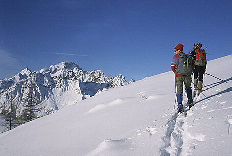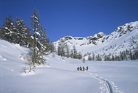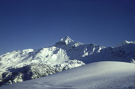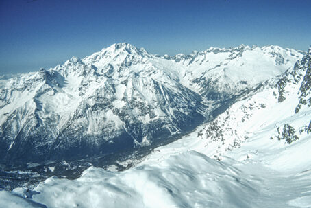 La gita scialpinistica al Sasso Nero è una delle più belle e classiche fra quelle fattibili ad inizio inverno in Val Malenco. Si tratta di un percorso complessivamente sempre in buone condizioni di sicurezza anche se da non sottovalutare, specie dopo forti nevicate recenti. La gita, può essere compiuta in due modi con differenti punti di partenza e differente impegno. Estate e d'inverno il Sasso Nero è una montagna molto particolare: nella bella stagione è un dedalo di bastionate rocciose inframmezzate da desolate e solitarie pietraie, d'inverno, si copre quasi interamente di un bianco mantello e assume un aspetto completamente diverso, più gentile e "ospitale". Un'altra particolarità legata alla nostra cima è la presenza di numerose vette, cinque in tutto comprese le due minori, che si susseguono sul lungo crinale sommitale da Est a Ovest. La vetta maggiore è alta 2921 m, ma raramente viene raggiunta dalle comitive che, una volta giunte sul crestone sommitale restano a bocca aperta ad ammirare l'imponente panorama che si apre dinanzi ai loro occhi. Il Sasso Nero è infatti uno dei migliori balconi panoramici sui colossi del gruppo del Bernina che, quasi a portata di mano, sfilano ben allineati a chiudere l'orizzonte settentrionale. Verso Ovest si allunga la bastionata rocciosa che va dal Piz Glüschaint 3594 m al Pizzo Sella 3511 m. Si impone poi nettamente la grandiosa triade Roseg-Scerscen-Bernina, nucleo centrale del massiccio e armoniosa architettura di pareti rocciose, canali innevati e creste merlettate. Più ad Est svetta la punta della Cresta Güzza seguita dall'oscura parete Ovest del Pizzo Argent.