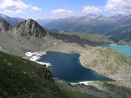 Dopo che vi sarete riposati presso le tranquille sponde del laghetto, più riparate dal vento che in questi luoghi è abbastanza comune, vi consigliamo di raggiungere il ciglio orientale della conca che lo ospita. Di lassù il panorama si apre anche sulla media e bassa Val San Giacomo il cui versante opposto è coronato da alte vette.
