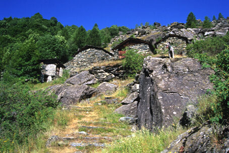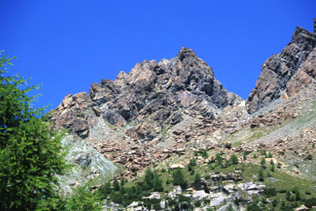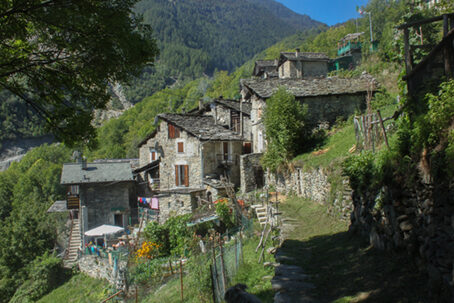 Perowskite, Artinite, nomi apparentemente astrusi ed esotici, senza significato per i comuni mortali. ma che, ad un ricercatore di minerali, evocano subito immagini di magnifici cristalli e di bianche formazioni delicatissime. Minerali, inoltre, molto rari fattore questo che ne ha notevolmete incrementato la fama fra i collezionisti. Proprio lungo il nostro percorso, poco sopra Ciappanico, sulle pietraie franate dalle rossastre pareti della Rocca Castellaccio, si trova una delle pochissime località italiane dove i due minerali possono essere rinvenuti. Sono miracoli che ci regalano i monti della Val Malenco, fra i più ricchi al mondo per varietà mineralogiche.
