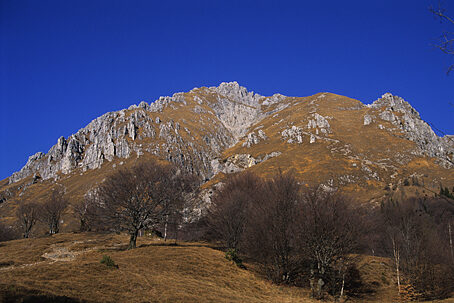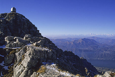 Sulla destra si avvicinano i profili rocciosi dei Torrioni Magnaghi che protendono verso i Resinelli una grande prua calcarea; a sinistra si cominciano ad intravedere le guglie che formano il versante meridionale della Cresta Segantini, la più classica via d'arrampicata che porta in vetta. Il sentiero procede detritico, con qualche salto di roccette intagliato nella cotica erbosa che riveste il crestone. Questa monotona ginnastica ha una breve pausa quando si giunge in corrispondenza del cartello che indica, a destra, la deviazione del sentiero n. 3, quella che noi abbiamo chiamato "Variante del Passo del Gatto". La via normale di salita continua, invece, a monte del cartello con un'altra sequenza di ripidi e faticosi tornanti che percorre il crestone mentre, a sinistra, si approfondisce il riarso solco del Canalone Caimi. Più in alto il crinale si riunisce con la cresta che delimita, a sinistra, il canalone Caimi e la salita prosegue mentre ci si avvicina alle rocce sommitali e da sinistra si immette il "Sentiero Cecilia" (segnavia n. 10). Si entra, ora, nel largo canalone roccioso che precede la cima; al suo termine, grazie ad un breve tratto attrezzato con catene, si guadagna la cresta che verso destra porta alla cima dove sorge il metallico igloo del Bivacco Ferrario.
