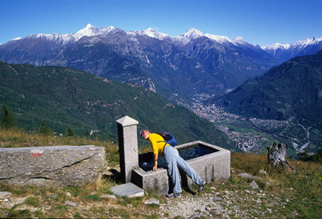 Da qui in avanti la mulattiera cede il posto al sentiero che continua sempre lungo la dorsale. Dopo le ultime case si fiancheggia, tenendolo sulla sinistra, un recinto al termine del quale si abbandona il tracciato che procede rettilineo, per salire a destra, portandosi in centro alla dorsale prativa. Si lambisce una fontana poco oltre la quale il terreno diventa ancor più ripido.