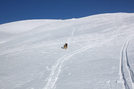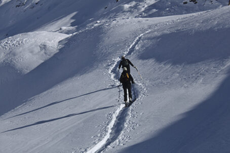 Utili i ramponi; occorre neve sicura in Val da Pila se si sceglie di scendere in quella direzione