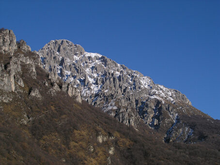 Prendendo ora a destra si percorre una traccia che s'attiene grosso modo al crinale della cresta che unisce lo Zucco della Rocca alla montagna.