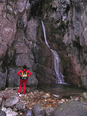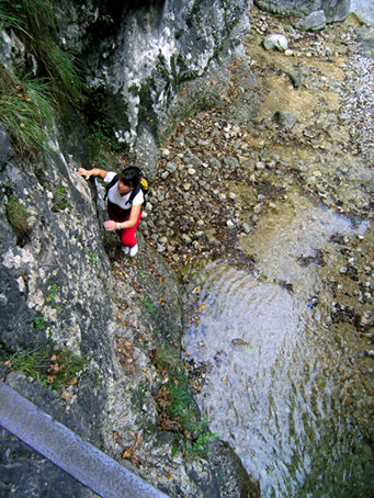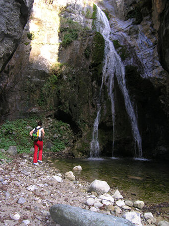 Dal parcheggio antistante il cimitero di Valmadrera o da quello che si trova poche centinaia di metri più a destra sulla Via Salvo d'Acquisto, si prosegue a piedi lungo la predetta via che si stringe a viottolo selciato con una moderna pavimentazione in cemento. La via termina all'inizio della Via Crucis che sale verso il santuario della Madonna di San Martino. Si svolta a sinistra e si percorre la larga carreggiata della Via Crucis fino alla quinta cappelletta, alle cui spalle si diparte verso destra un sentierino pianeggiante. Il tracciato porta sulle sponde della valle dell'Inferno dove una scaletta, sulla cui ringhiera si trova una statuetta della Madonna, permette di scendere verso il torrente. Si raggiunge così un ponticello che porta sulla sponda opposta da dove si deve piegare a sinistra entrando sul greto. In questo tratto il tracciato è poco evidente e spesso invaso dalla vegetazione, ma si tratta di poche decine di metri, finché non si giunge sulle ghiaie nei pressi dell'acqua. Si continua nella valle e si giunge alla base della suggestiva Cascata de la presun (Cascata della prigione) ove il procedere è precluso da alte pareti rocciose. Poco prima, sulla sinistra si diparte un sentierino che risale la sponda boscosa e porta di nuovo in vista della Via Crucis di San Martino. Si sale verso destra e poco dopo si incontra il sentierino che qui giunge staccandosi all'altezza della ottava cappelletta della Via Crucis. Si entra ora nella valle dell'Inferno percorrendone la destra orografica ed in breve si giunge alle prime vasche. Grazie a gradini intagliati sulle rocce laterali si superano facilmente le pozze spostandosi ora su una sponda ora sull'altra saltando sui massi del greto. Alcuni bolli segnavia (bianco-giallo-rosso), a volte sbiaditi, facilitano la scelta del percorso che più volte incrocia i tubi e le strutture di sostegno della antica captazione idrica. Con percorso vario e interessante (d'estate qui si può fare un refrigerante bagno scegliendo una vasca a piacere) si giunge presso la piccola diga artificiale del Vascun. Una scaletta in cemento permette di proseguire, ma al suo inizio vi consigliamo di proseguire per pochi metri verso sinistra entrando all'interno della gola perché, celata da un'alta quinta rocciosa, si cela la più bella delle cascate che avremo modo di vedere: la Cascada del Vascun. Tornati alla base della scaletta, la si risale e poi, grazie ad alcuni corrimano di fune metallica, si prosegue la salita per giungere in cima alle rupi dove si incrocia un sentiero proveniente da destra e dove, nei pressi di due grossi massi calcarei si trova una rudimentale teleferica. Si prende ora a sinistra in piano, fiancheggiando un muretto a secco, e si rientra nella gola passando sopra la Cascada del Vascun. Una comoda cengia pianeggiante ci riporta infine nel greto del torrente dove proseguiamo la salita imbattendoci anche in qualche masso erratico di granito e serpentino. Giunti in corrispondenza di un grande blocco calcareo, su cui è affissa la targhetta metallica del Gruppo OSA, il tracciato indica un proseguimento verso sinistra dove si incontrano due successivi e brevi passaggi attrezzati con catene, l'ultimo dei quali consente di superare un macigno di granito (Il primo passaggio, generalmente umido, può essere evitato passando in un pertugio aperto fra la sponda ed un masso posto alle spalle di quello con la targhetta). Continuando nella bella gola si incontrano ancora alcuni passaggini richiedenti qualche attenzione, ma ormai siamo vicini alla fine. Ben presto si incontra infatti il sentiero OSA n°1 che si segue dapprima sulla sponda sinistra orografica per poi portarsi su quella opposta e allontanarsi gradualmente dal letto del torrente. Una serie di tornanti permette di guadagnare quota risalendo la dorsale che separa la valle principale da una secondaria scendente da sinistra. Infine, usciti dal bosco, si risale un prato e si giunge sull'ampio sentiero n°5 che taglia orizzontalmente. A questo punto conviene spendere qualche minuto, percorrendo il sentiero n°5 verso destra, per raggiungere in breve i grandi blocchi di serpentino già tagliati siti in località Tàja Sass. Alle spalle dei blocchi si trova il gigantesco masso erratico - alto almeno dieci metri di serpentino da dove sono stati ricavati. Un cartello esplicativo racconta la storia del secolare sfruttamento di questi massi erratici di granito o serpentino ai fini edili.