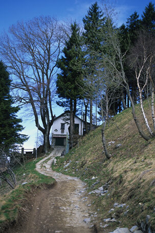 In alternativa si continua lungo il sentiero che attiene grosso modo alla cresta e, per facili pendii erbosi, si giunge alle poche roccette della vetta del Monte Bolettone 1317 m, poco sotto la quale sorge il rifugio omonimo. Si continua lungo il crinale fino ad una selletta da dove, in pochi passi, si raggiunge il ben visibile rifugio Mara. Da qui s'imbocca verso sinistra un sentierino che con qualche saliscendi nel bosco, raggiunge in breve (10 min.) la Bocchetta di Lemna.