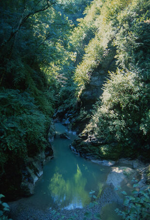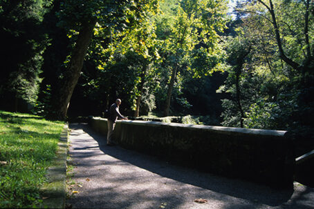 Terminata la serie di passerelle una scalinata permette di raggiungere uno spalto ombreggiato da platani ed affacciato sul lato destro idrografico del torrente. Dallo spalto ci si può spingere ancora un poco verso l'interno della forra per ammirare alcune belle pozze smeraldine e il punto di origine dell'Orrido. In alto, sul bordo destro idrografico della gola si nota un gruppo di case e la piccola chiesa dei S.S. Rocco e Sebastiano risalente al 1489. L'edificio sacro, oggi Sacrario dei caduti, è facilmente raggiungibile proseguendo lungo la Via XXV Aprile.