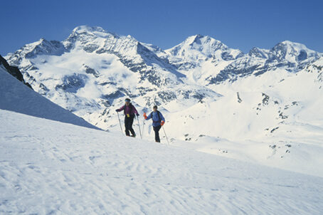Dal lato opposto, verso la Svizzera, il crinale della vallata é occupato dalle ultime propaggini settentrionali del gruppo della Cima di Piazzi che offrono ben altre caratteristiche anche se ci troviamo ormai alla periferia di questo importante gruppo montuoso. Dominano il limite meridionale della Valle di Livigno le creste rocciose che vanno dal Monte vago fino al Pizzo Filone costituendo un piccolo sottogruppo di belle vette con qualche piccolo ghiacciaio annidato nei recessi più ombrosi e sui versanti settentrionali. Il nucleo centrale del sottogruppo é formato dai nodi della Punta di Val nera 3160 m, del Pizzo Paradisin 3302 m e del Corno di Campo 3232 m che affaccia la sua imponente parete Sud sulla Val di Campo, splendida valle laterale della Valle di Poschiavo anch'essa adattissima per 'escursionismo e lo sci alpinismo.