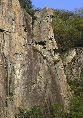 Grandi castagni ombreggiano la parte bassa del muro roccioso e, spesso, una fresca brezza scende dalla Val Fabiolo per ristorare i climber "cotti" dal sole cocente che da primavera all'autunno inonda la parete.