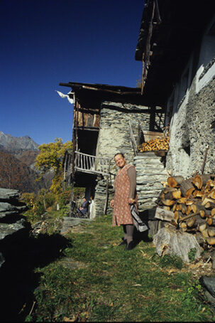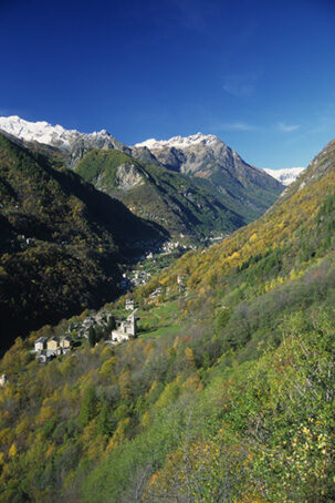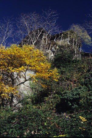 Il sentiero, segnalato con cartelli ebolli viola su fondo giallo, inizia di fianco alla chiesa di S. Gottardo aSpriana, fiancheggia il campanile, e prosegue a mezza costa in leggera salitaverso Sud. Con un paio di tornanti ci si porta ai piedi di un grande traliccioe poco oltre ecco Bedoglio, piccolo agglomerato oggi praticamente deserto esemidistrutto. Passando fra le case, sovrastate da un roccione di gneiss, siprosegue sempre a mezza costa giungendo ad una strada sterrata che sale dal bassoe prosegue alla volta delle case del Piazzo. Percorsa per circa duecento metridetta strada, la si abbandona al primo tornante (cartelli e escursionistici)per proseguire sempre nella medesima direzione di marcia lungo un buoncamminamento. Siamo nella zona della ormai celebre «frana di Spriana» lasorniona spada di Damocle sospesa sui destini di Sondrio. Alcune colonninerosse dei capisaldi di riferimento per la valutazione del movimento franoso euna «stazione remota di controllo» ci accompagnano per un tratto. Ad un certopunto il camminamento si stringe a sentiero. Si prosegue per esso entrando poiin una valletta (cartelli; da destra giunge il sentiero da Ere) usciti dallaquale, si lambisce una piccola costruzione di cemento oltre la quale si lasciaa destra una prima diramazione e qualche metro sopra si incontra il sentieroche, sempre da destra, sale dalla contrada Miali (palina con cartelli).Seguendo le indicazioni si prosegue verso sinistra e dopo pochi tornanti sigiunge sulla recente strada sterrata che conduce a Portola. La si segue e alsecondo tornante si prende un evidente sentiero che si stacca a destraarrivando in vista delle case di Portola. Il sentiero costeggia sulla destra iprati e giunge a un bivio dove si deve evidentemente piegare a sinistra perraggiungere l'abitato. Alla prima casa si sale a destra (fontana) e poi sipiega a sinistra a monte delle case immettendosi in un sentiero che riportasulla sterrata che si percorre fino al suo termine nei prati sottostanticontrada Cao. Leggermente a destra oppure direttamente su prato si raggiungonol'evidente fontana e le case soprastanti. Si piega a sinistra, si passa sottouna volta (cartelli) e si segue la direzione per Piazzo. Zigzagando in pianofra le case si passa sotto un pergola e si imbocca l'evidente largo sentieroche taglia in leggera discesa il prato tornando nel bosco. Superato un puntopanoramico dal quale si scorgono già le dimore di Piazzo, il percorso riprendepianeggiante poi con un tratto di notevole suggestione scende leggermentetagliando una parete rocciosa ricoperta di vivacissimi licheni gialli(ringhiera) e torna a farsi pianeggiante lambendo una presa dell'acquedotto. Daqui la taccia, meno marcata giunge in breve alle case superiori di Piazzoinnestandosi nel sentiero che sale a Castellaccio, Costa, Croce Monte Foppa. Siva a sinistra, si traversano i ruderi e ci si abbassa verso il secondo gruppodi case. Ad un bivio due possibilità o a sinistra scendendo su un pratoantistante una grande casa e al sottostante spiazzo da dove verso destra siarriva alla strada sterrata oppure a destra passando a monte delle case(traccia poco evidente) immettendosi poi in un breve tratturo che giunge allastrada. Ora si scende lungo la sterrata fino al bivi di Bedoglio, si va adestra e si torna a Spriana.