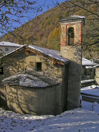 All'interno si possono ammirare dei cicli di affreschi risalenti al XIV e al XV secolo: un "Giudizio Universale" un "S. Giovanni Battista" e "I Re Magi", un "Crocefisso" e una "Trinità", "L'Adozione dei Magi", un episodio della "Vita di S. Giuliano ospitaliere", "La Vergine tra S. Nicola, un committente e un altro Santo", "S. Gottardo", "S. Stefano", "S. Cristoforo".