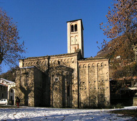 La stupenda chiesa di Santa Maria del Tiglio è uno degli edifici sacri più belli ed interessanti del Lago di Como e vero monumento alla perizia dei Maestri Comacini. Costruita verso la seconda metà del XII secolo, la chiesa sorge sopra il precedente battistero (V sec.) dedicato a S. Giovanni Battista. Le mura, elegantemente decorate da lesene, archetti pensili, feritoie, colonne, loggiati, absidi e oculi, sono costituite da pietre bianche e nere nelle quali si leggono anche immagini simboliche in bassorilievo. Dalla facciata sembra quasi generarsi spontaneamente la splendida torre campanaria ottagonale creando un mirabile ed equilibrato complesso architettonico.