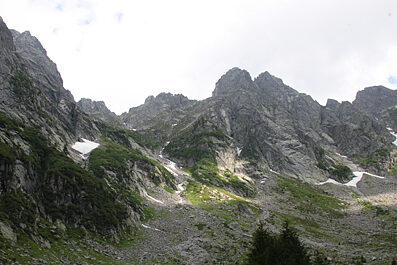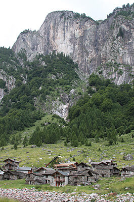 Sempre poco ripida, ma con fondo progressivamente peggiore la strada s'addentra lungo il fondovalle fra radure e macchie di faggi ed abeti. Riattraversato il torrente si porta sul versante opposto della valle e alternando qualche scomodo seppur breve tratto un po' ripido termina fra i grandi massi dove si trovano i ruderi dell'alpeggio di Corte Seconda.