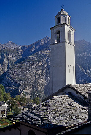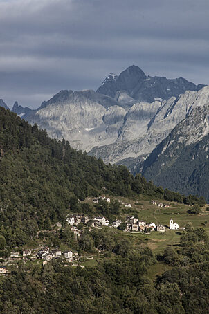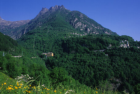 A fine stagione perché si è stanchi di tante giornate sulla bicicletta o ad inizio estate per iniziare, la Valtellina e la Valchiavenna offrono decine di percorsi affascinanti e mediamente impegnativi. E' il caso del semplice itinerario decritto di seguito che porta a visitare tre caratteristici paesi posti all'imbocco della soglia superiore della Valle del Drogo, confluente nella Val San Giacomo o Valle dello Spluga da Ovest. Come detto la salita non riserva particolari contenuti sportivi, invece è ricca di notevoli spunti turistici, ad iniziare dall'attraversamento di Chiavenna, importante e storico centro posto alla confluenza fra la Val Bregaglia e la Val San Giacomo, antiche direttrici viarie verso l'Engadina e la Mitteleuropa. Lungo il tragitto si avrà modo di "assaggiare" anche il primo tratto della classica ciclistica che conduce al Passo dello Spluga. Poi la salita si svolge fra fitte selve che nascondono gran parte del panorama finché non si raggiunge la parte alta del percorso, ove si godono begli scorci su Chiavenna e sul versante opposto della Val San Giacomo, mentre compaiono imponenti vette granitiche come il Pizzo di Prata e il Pizzo Badile. La strada giunge infine nel paese di Olmo e poco dopo in quello di San Bernardo, per concludersi a Scanabecco; tre piccoli villaggi la cui architettura e gestione sembrano ricordare più la Svizzera che l'Italia. La cosa si spiega ricordando che questi villaggi sorgono su un'antica via di comunicazione con la vicina Confederazione, una via che sicuramente risale ad epoche remote, forse precedenti l'arrivo della romanità fra questa valli.