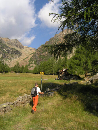 Entrati in Primolo si imbocca la prima strada sulla sinistra, che corre alle spalle dell'abitato e, in corrispondenza del campo sportivo, compie un'ampia curva verso sinistra diventando sterrata. Con un lungo tratto in leggera salita si raggiunge un comodo un parcheggio - cartelli Laghetti di Sassersa, Passo Ventina, Chiareggio - Pirlo, Alpe lago, Rif. Bosio. Evitando un sentiero che scende sulla sinistra si imbocca quello che stretto e pianeggiante entra nell'abetaia.