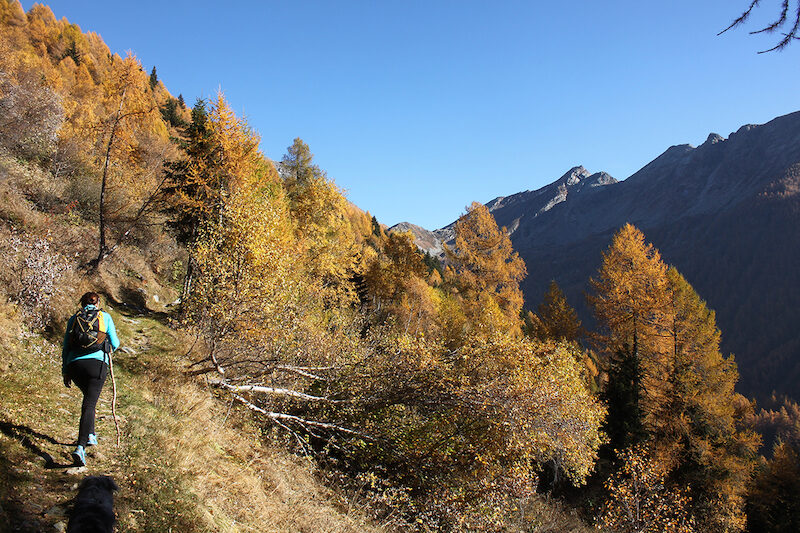 Dal Motto di Bondeno, si riprende il sentiero che s'addentra nella Val d'Avero, intagliato nel suo versante destro orografico (cartello indicatore). Dopo circa della in circa trenta minuti di agevole cammino in leggera discesa, superata una zona di detriti alluvionali si giunge all'abitato di Avero 1678 m, peraltro già da tempo ben visibile al centro della valle omonima.