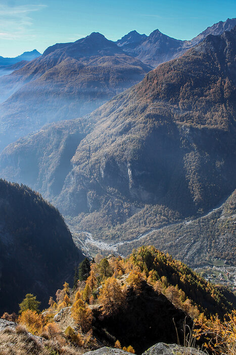 A Gualdera conviene lasciare l'auto. Si prosegue quindi a piedi lungo la strada che, dopo aver guadagnato quota con alcuni tornanti, raggiunge il piccolo nucleo di Bondeno (possibile arrivare in auto previo permesso acquistabile presso gli esercizi di Gualdera) costituito da tre successivi gruppi di baite.