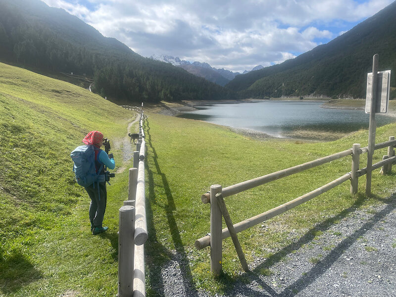 La discesa si svolge lungo il sentiero normale per poi tornare sfruttando la strada carrozzabile, oppure il sentierino che dopo aver costeggiato la sponda orientale del lago delle Scale di Fraele si collega alla strada poco prima di Villa Valania.