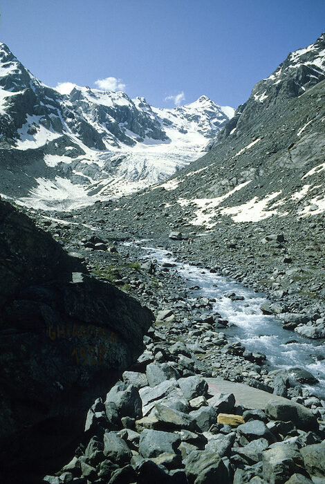 Anche se é difficile rendersene conto di primo acchito, bisogna pensare al ghiacciaio come a qualcosa di vivo ed in movimento, come ad un immenso torrente che invece di scorrere rapido verso valle, scende muovendosi di pochi metri l'anno.