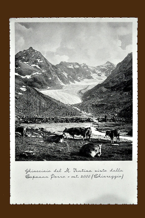 Dalla fontana sulla sinistra della piazzetta della chiesa di Chiareggio si scende al ponte sul Mallero che permette di traversare sulla sponda opposta. Il tracciato che porta all'Alpe Ventina (rifugi Gerli-Porro, rifugio privato Alpe Ventina) è una stretta carrareccia; la salita si svolge pertanto su un percorso molto comodo e dolce che termina ai rifugi Gerli-Porro, 1960 m, nei cui pressi un cartellone esplicativo fornisce le maggiori informazioni circa il percorso e la storia del ghiacciaio.