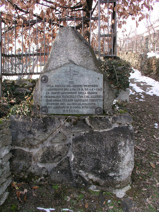 Usciti dall'agglomerato si continua per facile sentiero fra muretti a secco, arrivando presso la lapide che in modo assai discreto, indica il punto in cui fu tesa l'imboscata al Colonnello Alessi.