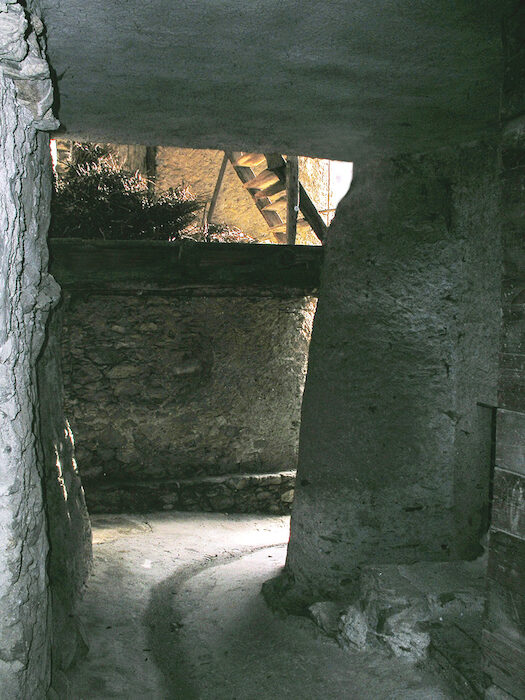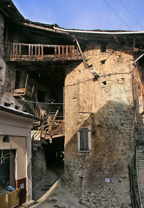 Arrivati ben presto ad un bivio, è possibile imboccare qualsiasi direzione. A sinistra, si sale direttamente alla contrada Colombera; a destra, si raggiunge in breve la vecchia strada asfaltata che, staccandosi sulla sinistra all'altezza della chiesa di S. Bartolomeo, porta a Sant Anna. Scegliendo quest'ultima soluzione, una volta sull'asfalto, poche decine di metri sulla destra si trova l'ingresso del cimitero dove riposa il Colonnello Alessi. Tornati sui nostri passi si percorre la stretta carrozzabile passando accanto al convento e, con un paio di stretti tornanti, si arriva in contrada Colombera. Tenendo la strada principale si taglia la piccola e ampia vallecola in cui sorge l'abitato raggiungendone il versante opposto presso una bella casa bianca, stile anni venti del 900, che sorge a sinistra, su un poggio. Qui, presso una fontana, si abbandona la strada per deviare a destra entrando fra le case (cartello giallo della Comunità Montana di Sondrio e segnavia bianco-rosso n. 320). Proseguendo dritti si traversa un piazzaletto, con un'altra fontana, da dove si entra in un sinuoso e suggestivo passaggio coperto fra antiche dimore.