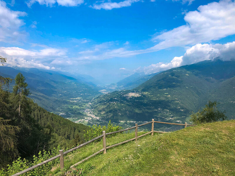 Il Passo dell'Aprica è una larga sella che interrompe la continuità dei crinali montuosi che delimitano a meridione la Valtellina; qui terminano le Alpi Orobie e inizia una lunga dorsale che si prolunga uniforme ed ininterrotta fino al Passo di Gavia. La prima parte di questo spartiacque è rivestita da fitte abetaie alle quali si alternano magnifici prati. I profili arrotondati ci ricordano che, almeno in parte il crinale fu ricoperto e smussato dai grandi ghiacciai del Quaternario che, ritirandosi, lasciarono la depressione in cui, successivamente, si formò la torbiera del Pian di Gembro. È un'oasi di pace immersa nel verde da dove si aprono magici ed estesissimi panorami. Verso Nord ci si affaccia sulla Valtellina mentre in lontananza scintillano i bianchi ghiacciai del Bernina. Verso oriente, quasi a portata di mano, appare il massiccio dell'Adamello che sembra quasi una magica isola galleggiante sui vapori della Valcamonica. A Sud, oltre il Passo dell'Aprica, i verdi boschi che ammantano le pendici inferiori del Monte Palabione sono segnati dal tracciato delle piste da sci. Le opere difensive risalenti alla Grande Guerra sorgono sul crinale affacciato verso la Valtellina e la prospiciente Valposchiavo, valle svizzera da cui si temeva una possibile incursione austriaca che avrebbe potuto aggirare le linee italiane disposte sul fronte dell'Ortles-Cevdale.